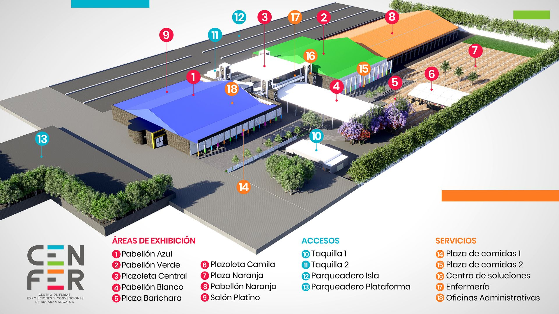 Es un espacio de alto tráfico situado estratégicamente para integrarse con los pabellones. Posee un diseño industrial con una cubierta a 20 metros de altura (aproximadamente), que proporciona al visitante una amplia conexión con el aire libre. Ideal para la realización de actividades lúdicas, muestras comerciales, juzgamientos de ganado, lanzamientos de productos o cualquier evento que requiera estas características para ser realizado.