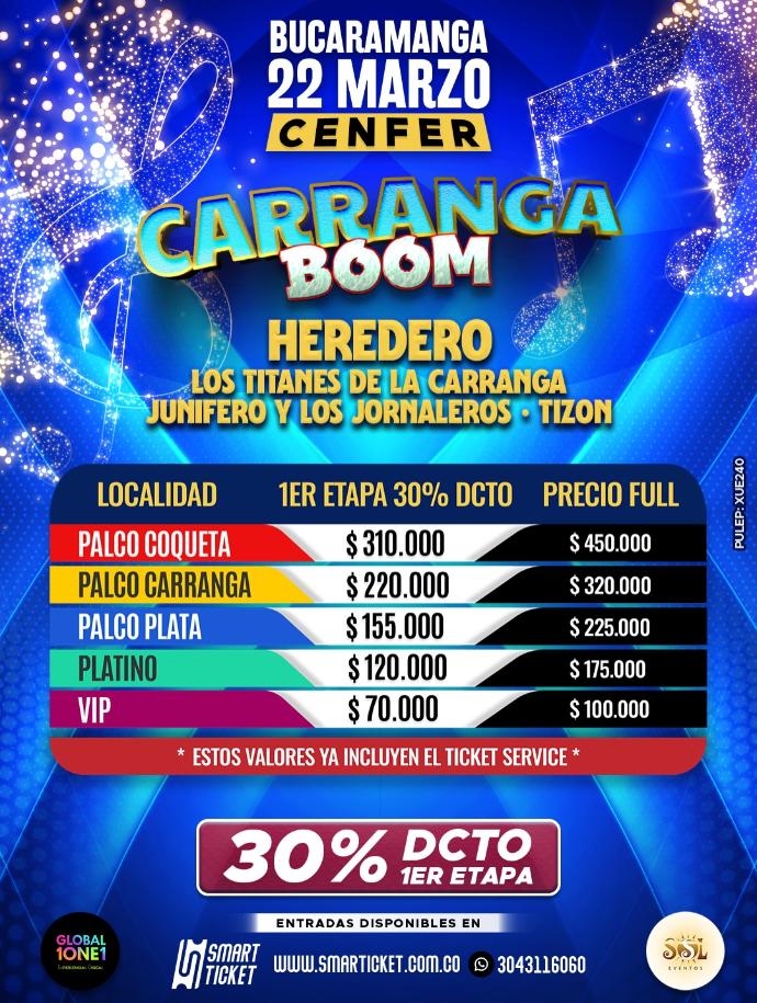 ⭐Aprovecha el 30% de descuento en la primera etapa y asegura tu entrada al mejor concierto carranguero del año.⭐