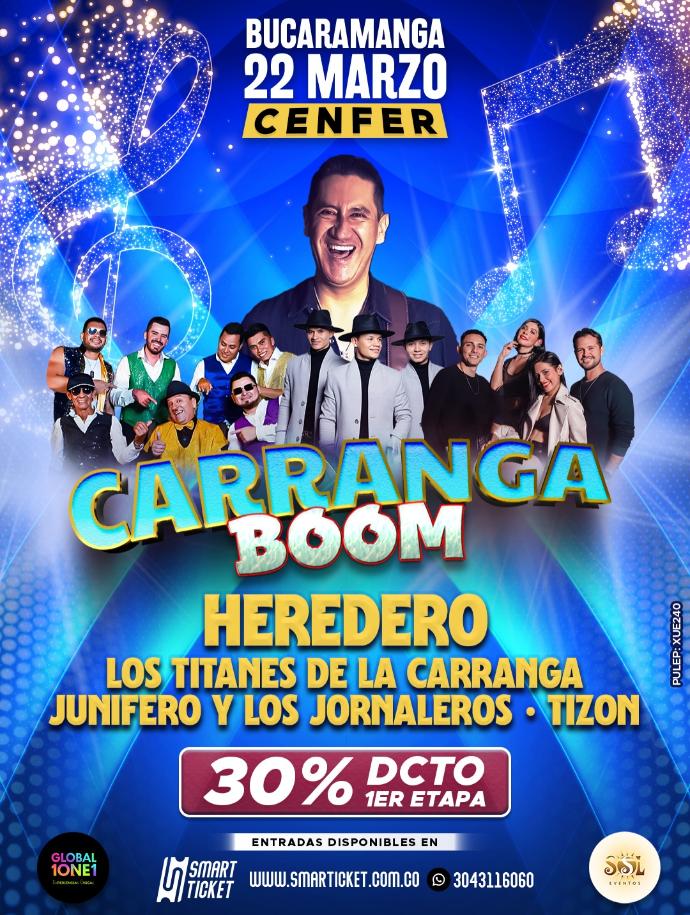 Este 22 de marzo, llega CARRANGA BOOM a CENFER, con un cartel de lujo: