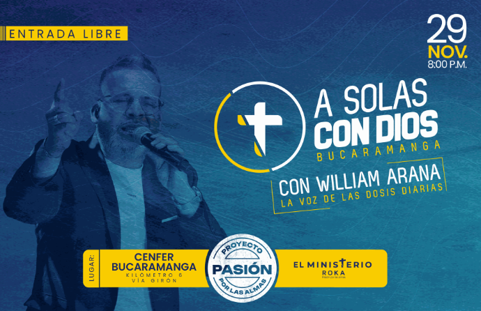 William Arana, la voz de la dosis diaria, llega a CENFER en una jornada que nos podrá a orar "A SOLAS CON DIOS". Este evento no tiene costo (entrada libre) y promete avivar la fe y esperanza de los colombianos.