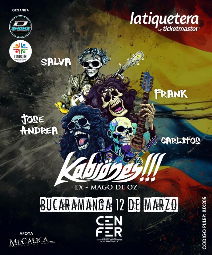 KABRONES TOUR COLOMBIA 2026 agrupación integrada por viejos miembros de Mägo De Oz y amigos músicos de dichos integrantes como lo son: